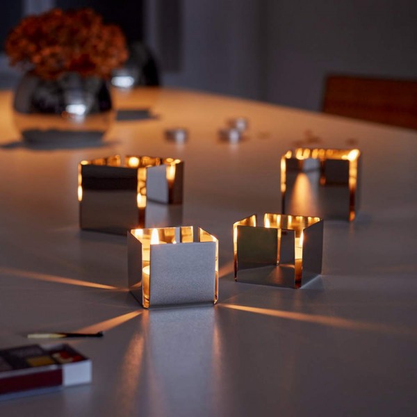 Противолоположностите винаги са се привличали по някакъв странен и необясним начин, още от откриването на огъня. Полираната повърхност от неръждаема стомана на PEP е толкова приятна на вид, когато е сложена върху дървена маса. Класическата минималистична квадратна форма с процепите отстрани залива обкръжаващата среда в омагьосващ танц на светлините, създавайки уютен акцент във всяка стая в дома ви. Съвременен стил и романтизъм са съчетани умело.