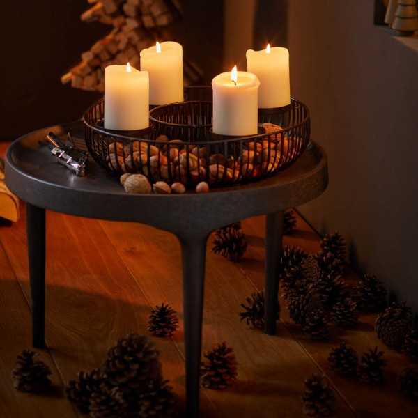 С този свещник PANAMA ще придадете допълнително празнично усещане у дома! Придайте на масата си вълшебно усещане, като украсите фруктиерата с елхови клонки и ядки - по ваш вкус. PANAMA със своите кръгли форми и топла матово кафява стомана ще внесе коледната магия вкъщи. Дали на голямата празнична маса или в накой уютен кът на дома - това е мястото, където пламва любовта на коледния сезон! Пригответе се за незабравими моменти, когато свещите горят и смях изпълва дома. Създайте своя традиция, бъдете домакина на празника и вдъхнете живот на вашия свещник PANAMA.