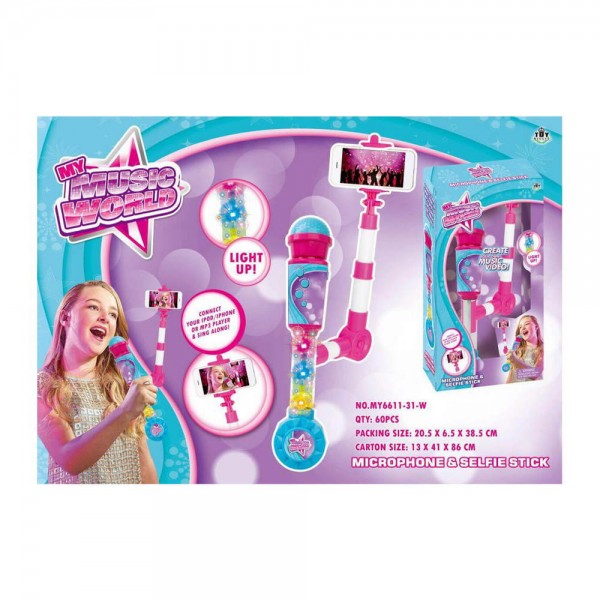 Изпей любимата си песен и се снимай, докато пееш. А защо не повикаш приятели и да си организирате домашно караоке? С този страхотен комплект микрофон и селфи стик, можеш да бъдеш звезда! Защото той има куп екстри: 5 бутона – включване/изключване, демо мелодии, аплаузи, стоп, регулиране силата на звука; светеща дръжка; говорител; жак кабел за свързване към смартфон; здрав държач; регулираща се дължина на селфи стика и възможност за отделяне от микрофона. Е, коя е любимата ти песен?