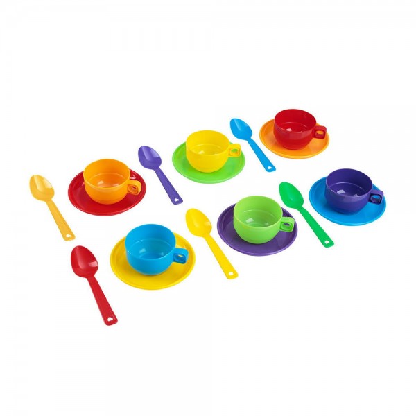 Детски цветен сервиз за чай, който ще се хареса на всяко хлапе. Изработен е от здрава пластмаса и съдържа всичко необходимо за едно страхотно чаено парти. Комплектът е подходящ за самостоятелни игри или в компанията на приятели. Съдържание: 6 чашки, 6 чинийки, 6 лъжички.