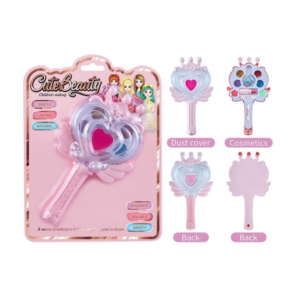 Розова палитра под формата на жезъл, която всяка млада дама ще оцени подобаващо. Съдържа 4 цвята блестящи цвята сенки, гланц за устни и цветни ластичета за прически. Сенките са безопасни за употреба и лесно се отстраняват с вода!