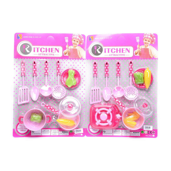 Готварски комплект за игра с 4 прибора, тиган, хранителни продукти и други кухненски пособия. Подходящо за момичета над 3 години и чудесен подарък за повод или без.