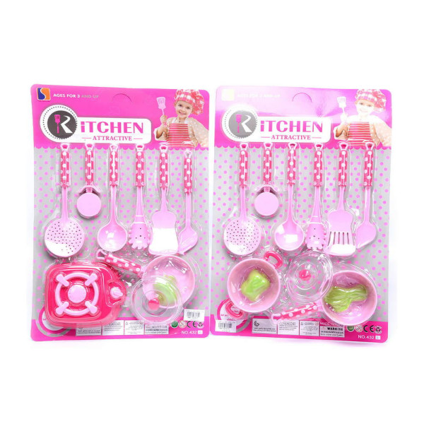 Описание на Детски розов кухненски комплект с 6 прибора: