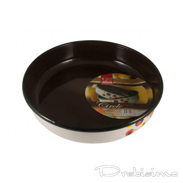 Емайлирана кръгла тава, подходяща за всекидневна употреба. Изработена от висококачествена стомана покрита със слой издръжлив емайл, който предпазва тавата от корозия, а вашите ястия от проникването на вредни вещества и максимално запазвайки техния естествен вкус. Покритието на тавата е устойчиво на киселини, което прави съдовете от този тип безопасни за готвене на всякаква храна. Подходяща е за всички видове фурни. Лесна за миене, включително и в съдомиялна машина.