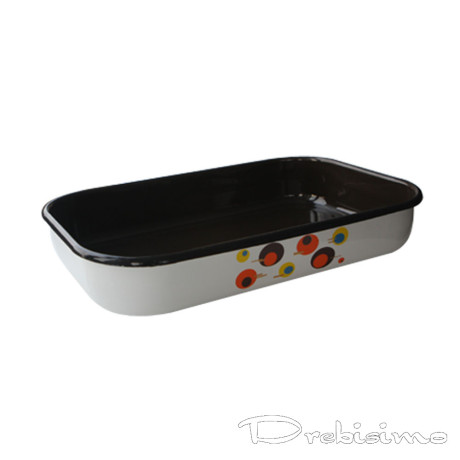 Емайлирана правоъгълна тава, подходяща за всекидневна употреба. Изработена от висококачествена стомана покрита със слой издръжлив емайл, който предпазва тавата от корозия, а вашите ястия от проникването на вредни вещества и максимално запазвайки техния естествен вкус. Покритието на тавата е устойчиво на киселини, което прави съдовете от този тип безопасни за готвене на всякаква храна. Подходяща е за всички видове фурни. Лесна за миене, включително и в съдомиялна машина.