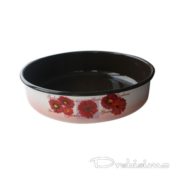 Описание на 32 см кръгла емайлирана тава с разцветка Гербери: