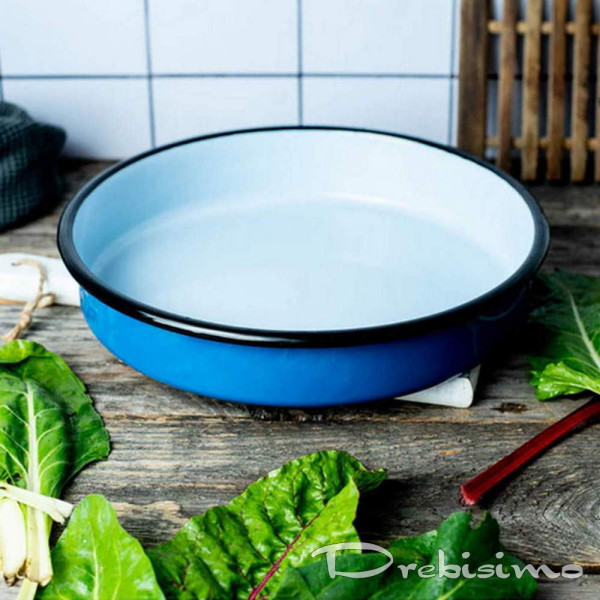 Описание на 28 см кръгла емайлирана тава Metalac Posude в син цвят: