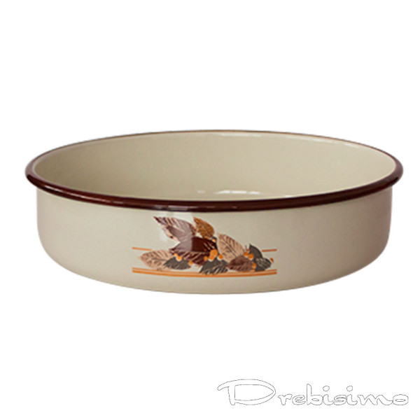 Емайлирана кръгла тава, подходяща за всекидневна употреба. Изработена от висококачествена стомана покрита със слой издръжлив емайл, който предпазва тавата от корозия, а вашите ястия от проникването на вредни вещества и максимално запазвайки техния естествен вкус. Покритието на тавата е устойчиво на киселини, което прави съдовете от този тип безопасни за готвене на всякаква храна. Подходяща е за всички видове фурни. Лесна за миене, включително и в съдомиялна машина.
