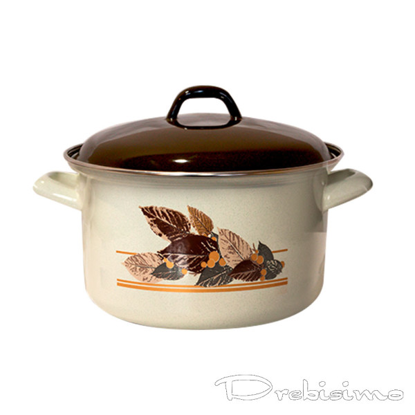 Описание на 22 см (4,9 л.) емайлирана тенджера с метален капак разцветка Есен: