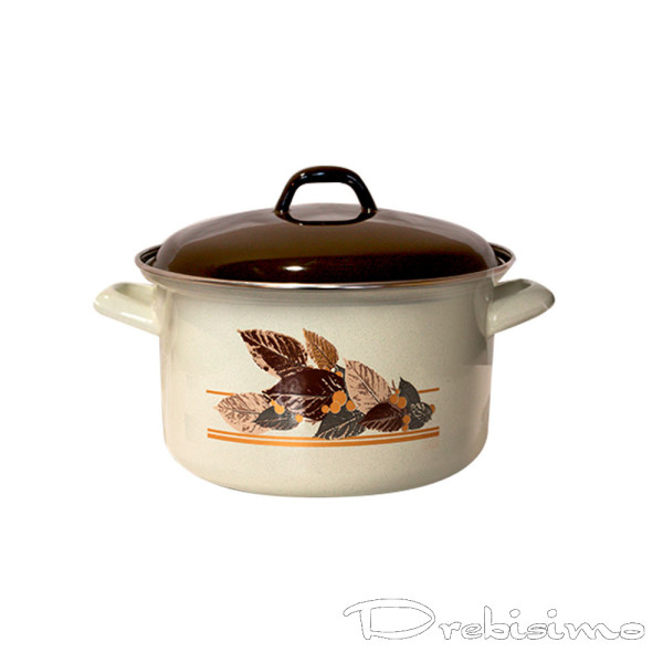 Описание на 20 см (3,75 л.) емайлирана тенджера с метален капак разцветка Есен: