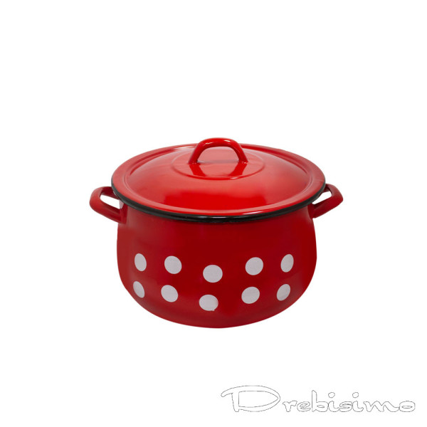 18 см (3,3 л.) емайлирана тенджера с метален капак разцветка Бели точки на червен фон