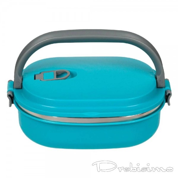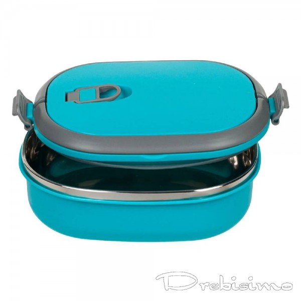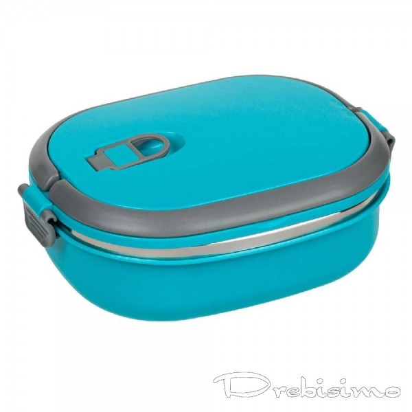 Симпатична овална термо кутия за храна, с която лесно и сигурно да вземете вкусен обяд със себе си на работа, в офиса или когато пътувате. Вътрешната част на кутията е с основа от неръждаема стомана и двойна изолация на стените. Това позволява храната да се запази топла или студена за период от около 2-3 часа. Капакът разполага с вентилационен отвор за поддържане на свежестта на храната, има силоконово уплътнение, което увеличава устойчивостта на течове и се затваря сигурно със здрави странични клипсове. Термо кутията е лека, удобна за пренасяне благодарение на двете големи дръжки и лесна за почистване.