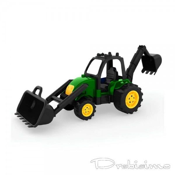 Детска мултифункционална машина 2 в 1 за извършване на различни строителни и селскостопански дейности – трактор с челен товарач и багер. Играчката притежава просторна кабина, масивни гуми с грайфер и 2 кофи. Забавлявайте се у дома, в парка и дори на плажа – висококачествената пластмаса няма да избледнее под жарките слънчеви лъчи. Опаковка: мрежа.