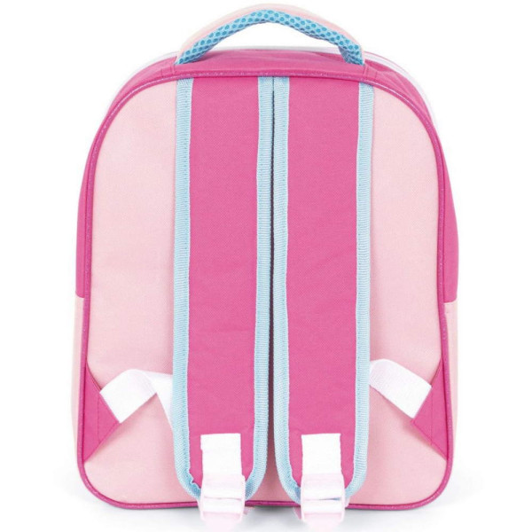 Розова раница Барби, изработена по европейски дизайн, на испанския производител Arditex. С едно основно отделение с цип, преден прозрачен джоб с цип, подплатени регулируеми презрамки и дръжка за носене в ръка. С подсилено дъно и подплатен гръб. Идеалната първа раница за детска градина или училище. Опаковка: полиетиленов плик. Подходящо за момичета над 3 години.