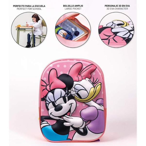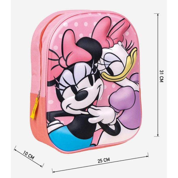 Раница за детска градина и предучилищна възраст Мини и Дейзи, изработена по европейски дизайн, на испанския производител Cerda. С 3D панел, едно основно отделение с цип, подплатени регулируеми презрамки и дръжка за носене в ръка. Подходящо за момичета от 3 до 6 години.