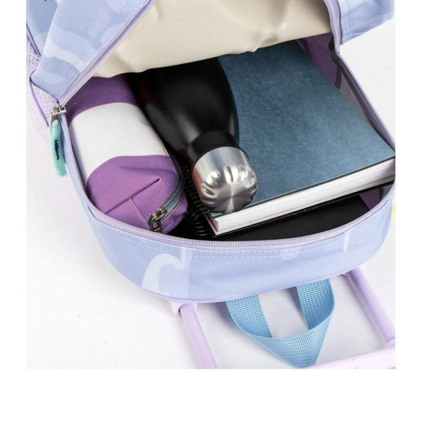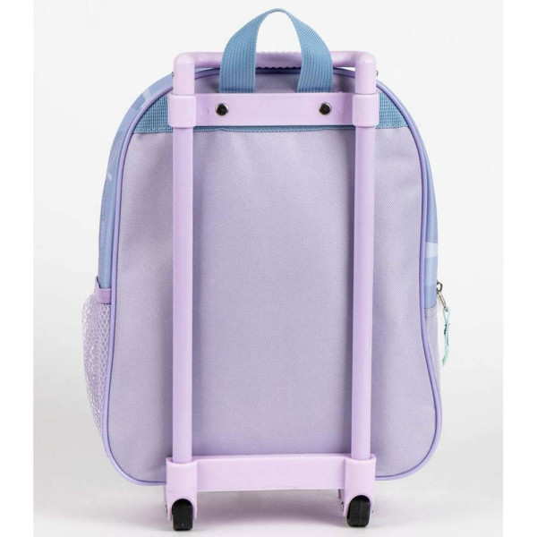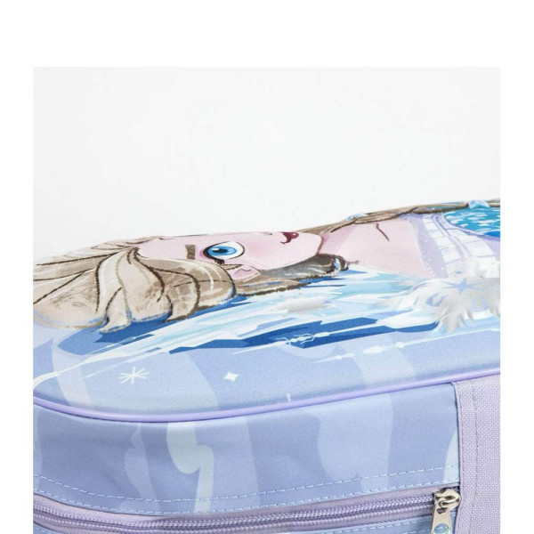 Раница за предучилищна възраст Замръзналото кралство - Елза, изработена по европейски дизайн, на испанския производител Cerda. С 3D панел, едно основно отделение с цип, страничен мрежест джоб, дръжка за носене в ръка, телескопична дръжка и колелца. Подходящо за момичета от 3 до 6 години. ·