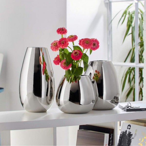 Измислени от Андреас Оствалд, тези съвременни вази виреят най-добре в луксозна обстановка. Те са безупречно изработени и са направени от неръждаема стомана с никелови примеси; също така са достатъчно стабилни и тежки, за да не можете да ги съборите с лека ръка. Серията идва в три различни форми и размери, които умело се съчетават с пищни букети цветя в антрета, всекидневни, офиси или ресторанти. Насладете им се.