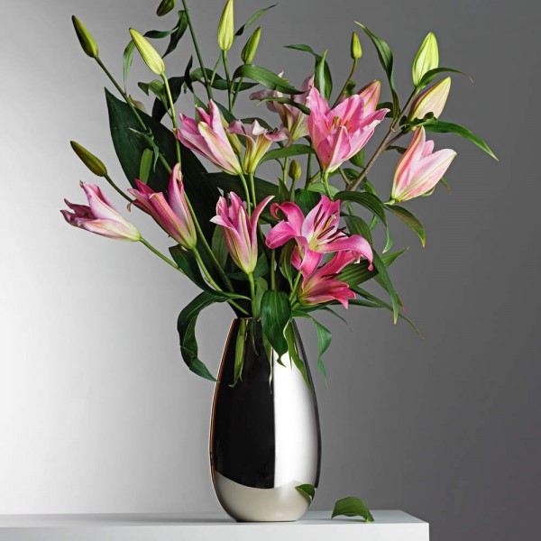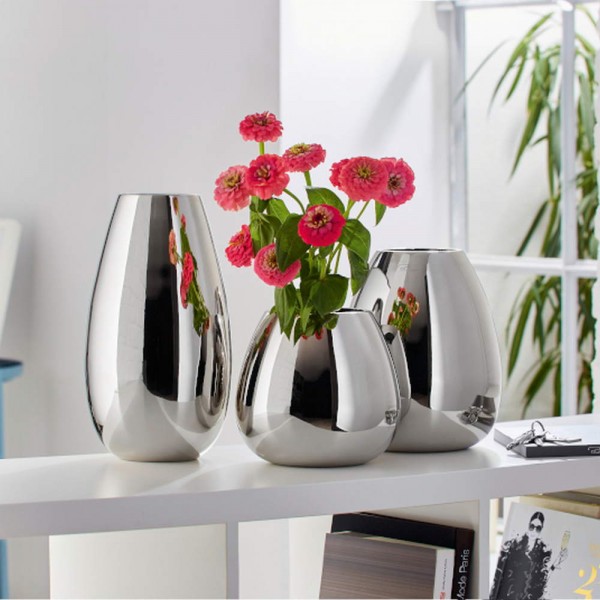 Измислени от Андреас Оствалд, тези съвременни вази виреят най-добре в луксозна обстановка. Те са безупречно изработени и са направени от неръждаема стомана с никелови примеси; също така са достатъчно стабилни и тежки, за да не можете да ги съборите с лека ръка. Серията идва в три различни форми и размери, които умело се съчетават с пищни букети цветя в антрета, всекидневни, офиси или ресторанти. Насладете им се.
