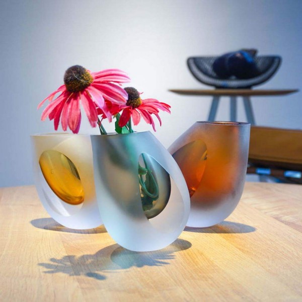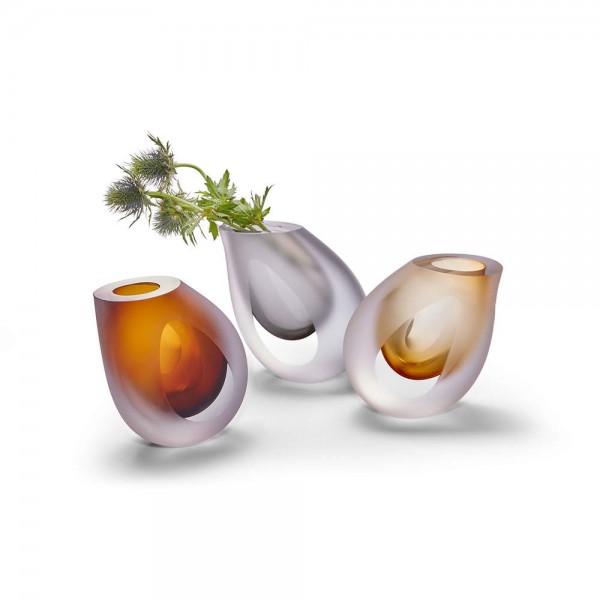 Естетиката, разгърната в големи размери, носи името OCCHIO. Тази ръчно изработена ваза със спиращ дъха дизайн, въздействащ на сетивата, е вдъхновена от формата на капка вода, но е съчетана с три цветови разновидности - кехлибар, опушено сив и кафяв, които вдъхват живот на тези уникални полирани произведения на изкуството. Почистването е препоръчително да става на ръка - това говори само по себе си.