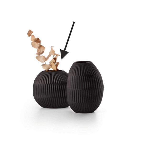 Асиметричната визия в никакъв случай не е случайна, а по-скоро умишлена. Творческа свобода, далеч от прецизно премерената монотонност. Ваза NOIR има прекрасна плисирана визия, която е основната причина за очарователната игра на светлината върху повърхността. Покрита с матово черно, което контрастира с цветния букет. Без съмнение, вазите се правят за цветя, но дори и без тях, вазата стои красиво и стилно, като предизвиква фурор в качеството си на украса или скулптура.