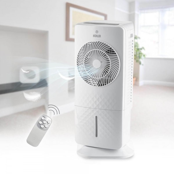 Въздушният охладител е многофункционален уред, който може да се използва като охладител, вентилатор и овлажнител, за да отговори на вашите нужди. Охлаждащият ефект се постига чрез изпаряване на вода или лед от 4-литровия резервоар за вода. С 3 режима на въздушната струя, 3 скорости и осцилираща функция, този въздушен охладител може да ви осигури персонализиран и широкоъгълен хладен въздушен поток. Охладителят може да работи с ледени блокчета, които могат да подобрят ефективността на охлаждане. В сравнение с обикновен климатик, този уред е с ниска охлаждаща мощност от 65 W и може да спести много повече енергия и пари. Дистанционното управление ви позволява да контролирате ефективността, без да напускате удобното си легло или диван. Можете да го използвате във вашата всекидневна, спалня, офис, вила, кемпер и други помещения, в които не може да се монтира климатик.
