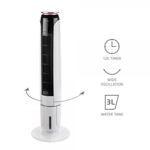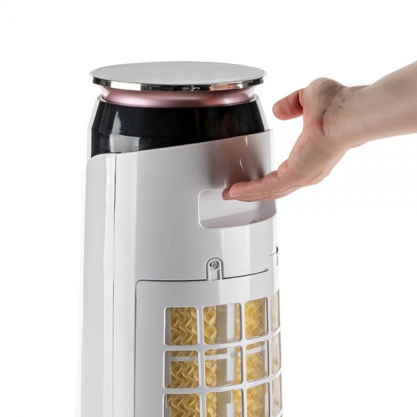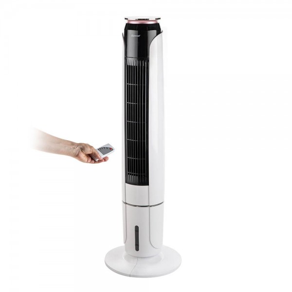 - Мобилен охладител тип кула. Функционира като овлажнител и пречиства въздуха от едри прахови частици