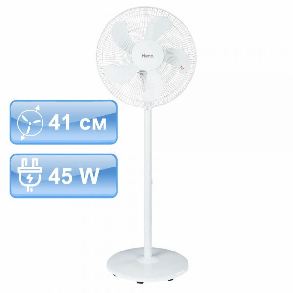 41 см бял вентилатор на стойка Homa