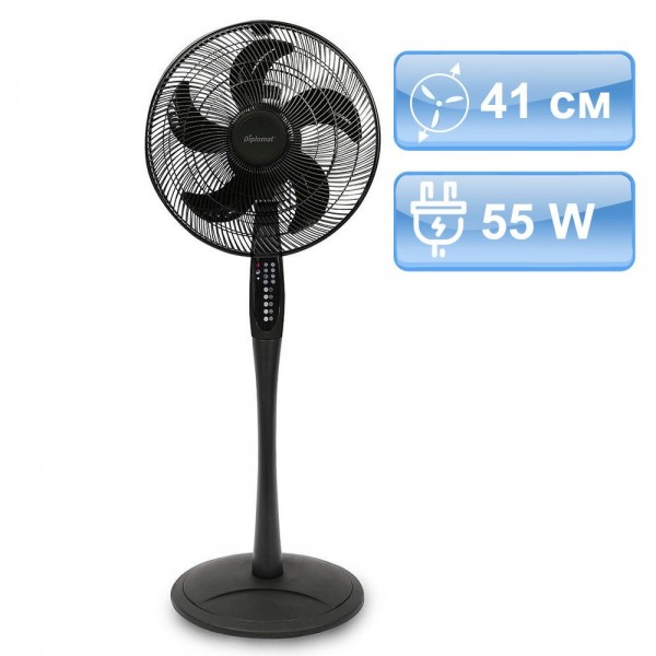 Описание на 41 см черен вентилатор, дигитален с WiFi Diplomat модел DX-555RC: