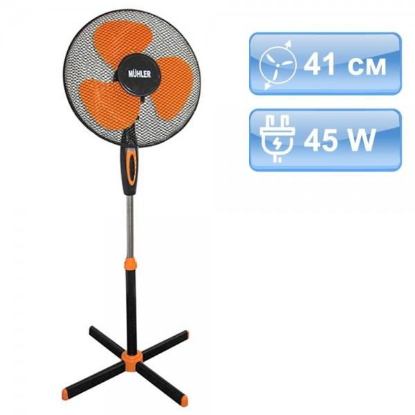 41 см вентилатор в цвят черно и оранжево на стойка MUHLER