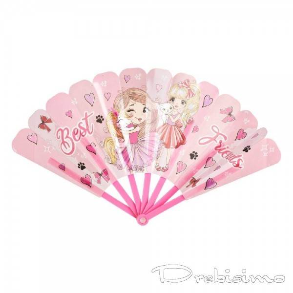 Ветрилото е сгъваемо, в розов цвят, декор - момиченца и надпис "Best Friends". Чудесен подарък за малки госпожици, които с удоволствие ще кокетничат с него. Олекотеният дизайн на ветрилото позволява то да бъде носено в детската чантичка или джобче.