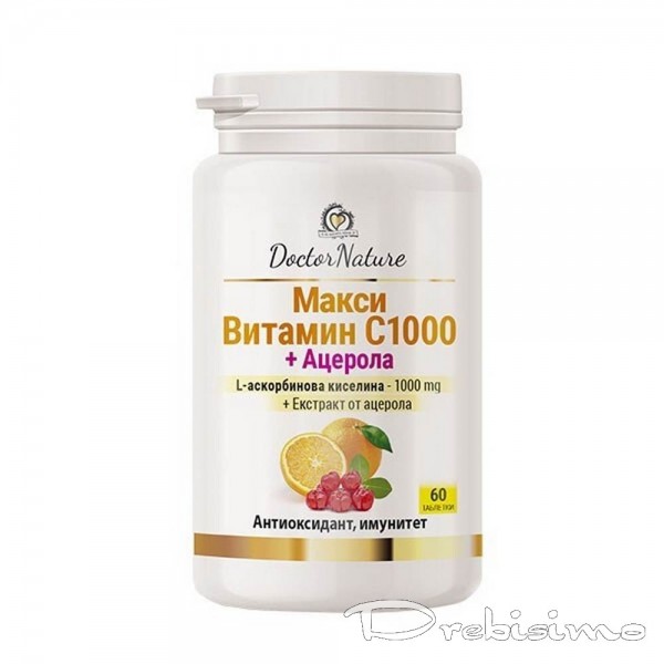 Dr. Nature Макси Витамин С 1000 + Ацерола осигурява на организма един от най-важните антиоксиданти – витамин С, който е жизненоважно хранително вещество за нашето здраве. Той се усвоява лесно, защото формулата на хранителната добавка е подсилена от екстракт от плода ацерола – богата на биофлаваноиди, които помагат за абсорбирането на витамин C. В същото време не дразни стомаха и щади чревната флора. Освен витамин С със силен антиоксидантен капацитет, осигурява още витамин А, витамин Е, витамини от В-групата, калций, фосфор, желязо, магнезий, фибри, протеини и мастни киселини.