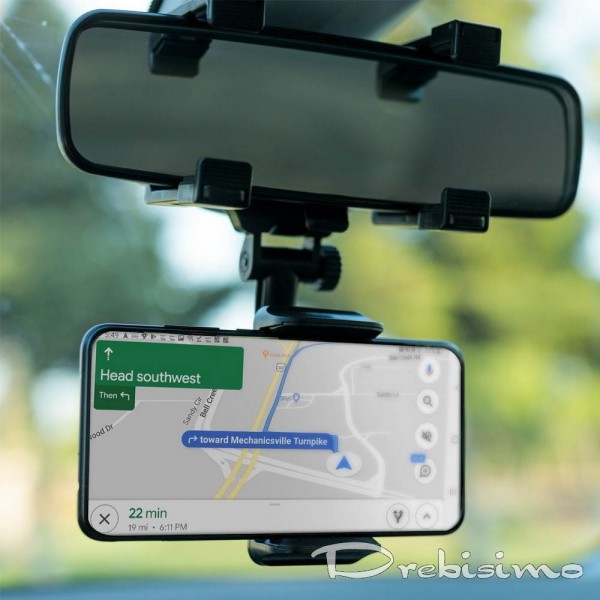 Шофирането е неизбежна част ежедневието ни. За да бъдете в безопасност, докато шофирате колата си, ще бъде по-лесно, ако притежавате регулируема стойка за навигация или смартфон. Тя е удобна, лесна за поставяне и с въртяща се под произволен ъгъл основа, така че да получите най-добрата перспектива. Скобата се захваща здраво към огледалото за обратно виждане на автомобила, а нейният регулируем дизайн пасва на различни размери огледала и мобилни устройства. Здравата основа на стойката абсорбира вибрациите на автомобила, осигурявайки стабилна среда за гледане.