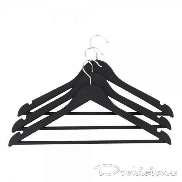 3 бр дървени закачалки за дрехи в черен цвят