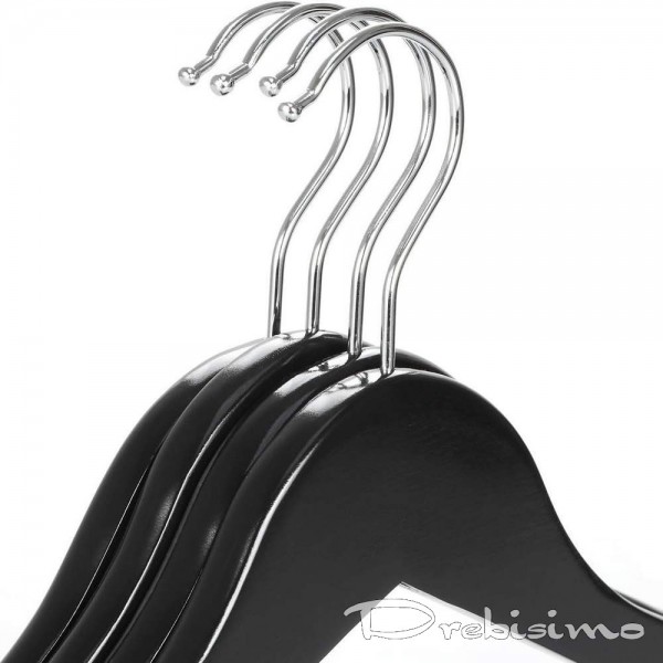 Описание на 3 бр дървени закачалки за дрехи в черен цвят: